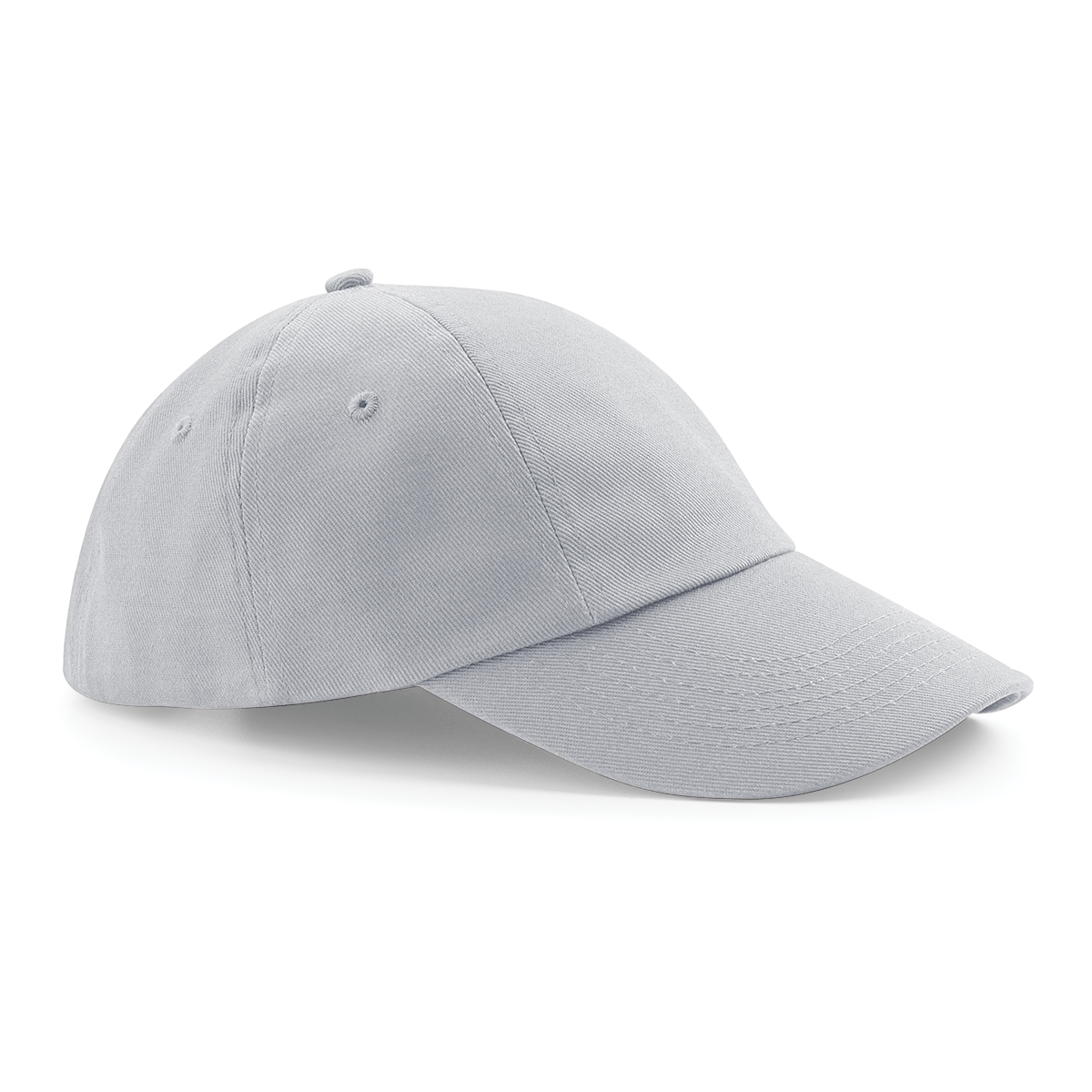 100% coton drill brossé, modèle 6 panneaux, visière préformée, sangle de serrage avec boucle métallique et passant, illets de ventilation.