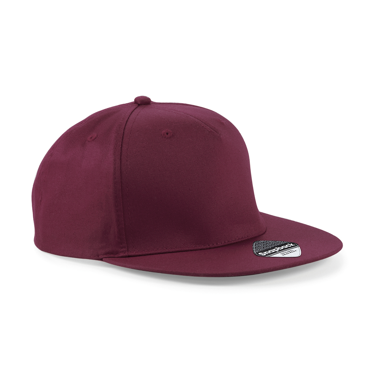 100% coton Twill. Visière plate. Ajustable par réglette plastique rétro Snapback. Étiquette Tearaway pour faciliter le changement de marque.