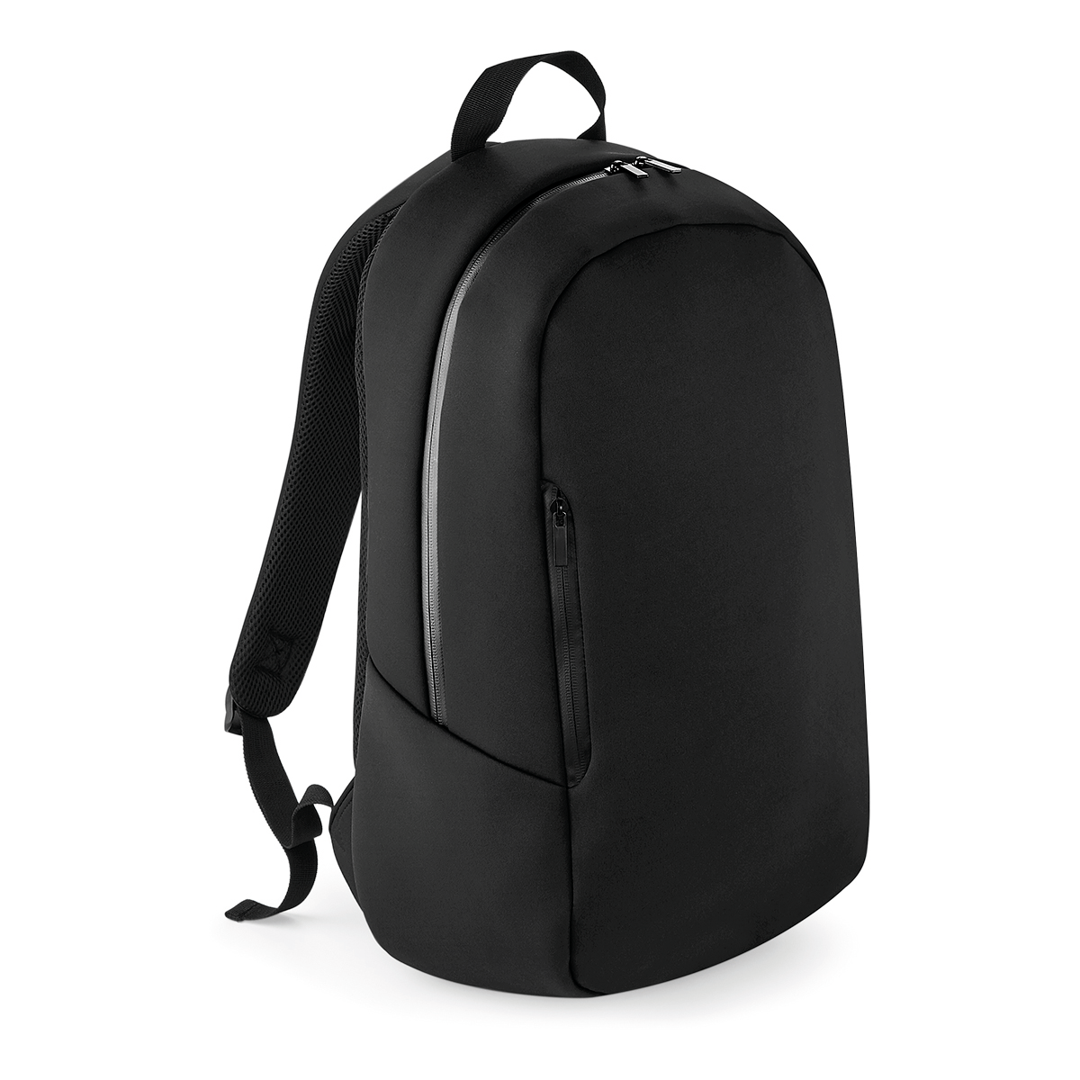 94 % polyester/6 % élasthanne. Étiquette détachable TearAway. Compatible avec les ordinateurs portables jusqu'à 15,6''. Tissu scuba moderne. Poche extérieure zippée. Compartiment principal avec fermeture zippée. Pochette interne plaquée. Dos matelassé. Ba