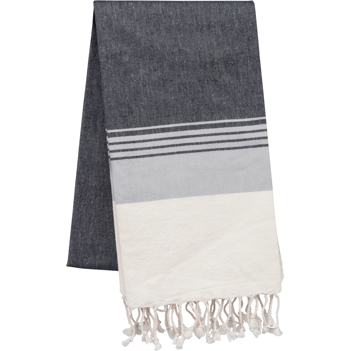 100% coton. Dimensions : 170 x 90 cm. Franges torsadées avec un nud. Ce produit a subi un traitement spécial et présente un aspect volontairement vieilli. Ce procédé de fabrication implique de légères variations de couleurs d'un produit à l'autre et rend
