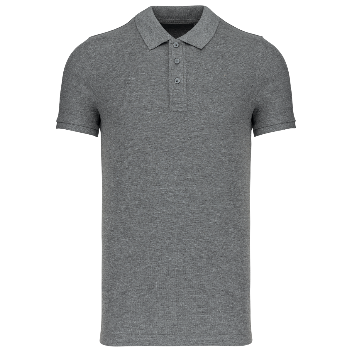 Coloris unis 100% coton biologique. Coloris Wine Heather, Ocean Blue Heather et French Navy Heather 80% coton biologique / 20% polyester. Coloris Grey Heather 70% coton biologique / 30% viscose. Col et bas de manches en bord-côte 1x1. Patte de boutonnage