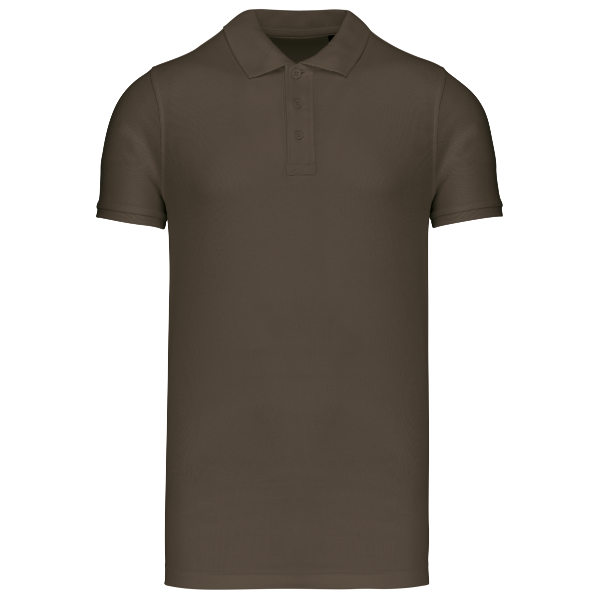 Coloris unis 100% coton biologique. Coloris Wine Heather, Ocean Blue Heather et French Navy Heather 80% coton biologique / 20% polyester. Coloris Grey Heather 70% coton biologique / 30% viscose. Col et bas de manches en bord-côte 1x1. Patte de boutonnage