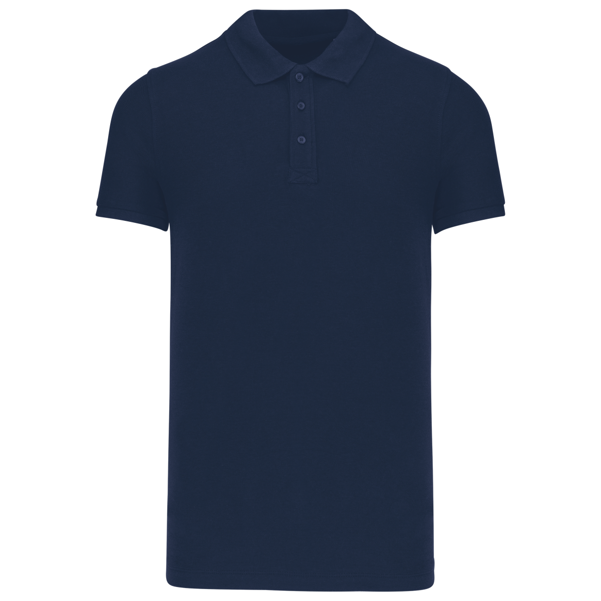Coloris unis 100% coton biologique. Coloris Wine Heather, Ocean Blue Heather et French Navy Heather 80% coton biologique / 20% polyester. Coloris Grey Heather 70% coton biologique / 30% viscose. Col et bas de manches en bord-côte 1x1. Patte de boutonnage