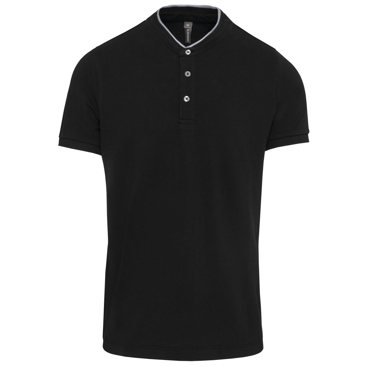 100% coton. (90% coton / 10% viscose pour coloris chiné). Maille piquée en coton peigné. Lavable à 60°C (40°C pour coloris chiné) Col style mao en bord-côte avec liseré contrasté. Patte de boutonnage 3 boutons contrastés. Bord-côte bas de manche. Finition