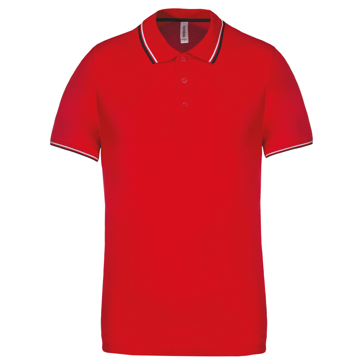 100% coton piqué. Patte de boutonnage col 3 boutons. Bande de propreté contrastée encolure et fentes côtés. Finitions bord-côte avec liserés contrastés col et bas de manches. Double aiguille bas de vêtement.