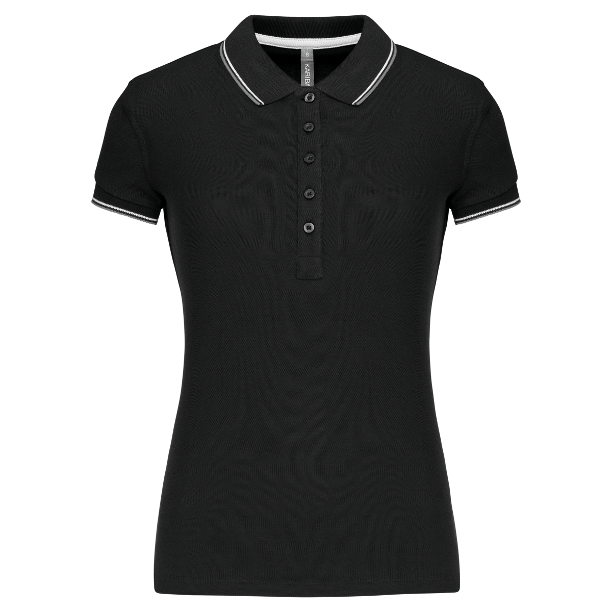 100% coton piqué. Patte de boutonnage col 5 boutons. Bande de propreté contrastée encolure et fentes côtés. Finitions bord-côte avec liserés contrastés col et bas de manches. Double aiguille bas de vêtement.