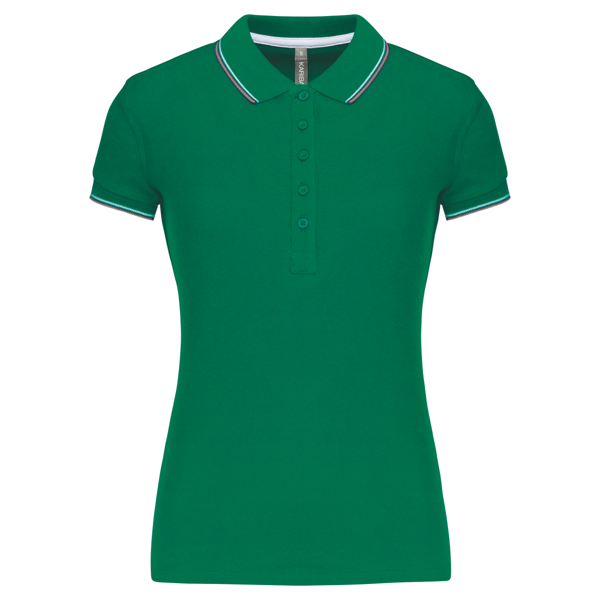 100% coton piqué. Patte de boutonnage col 5 boutons. Bande de propreté contrastée encolure et fentes côtés. Finitions bord-côte avec liserés contrastés col et bas de manches. Double aiguille bas de vêtement.