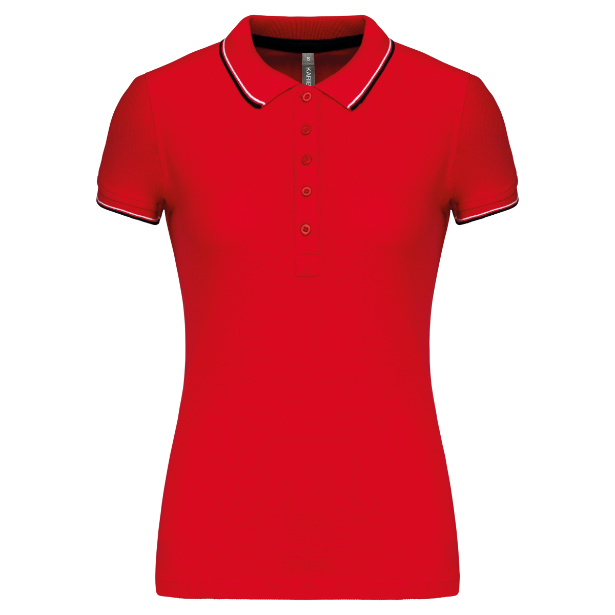 100% coton piqué. Patte de boutonnage col 5 boutons. Bande de propreté contrastée encolure et fentes côtés. Finitions bord-côte avec liserés contrastés col et bas de manches. Double aiguille bas de vêtement.