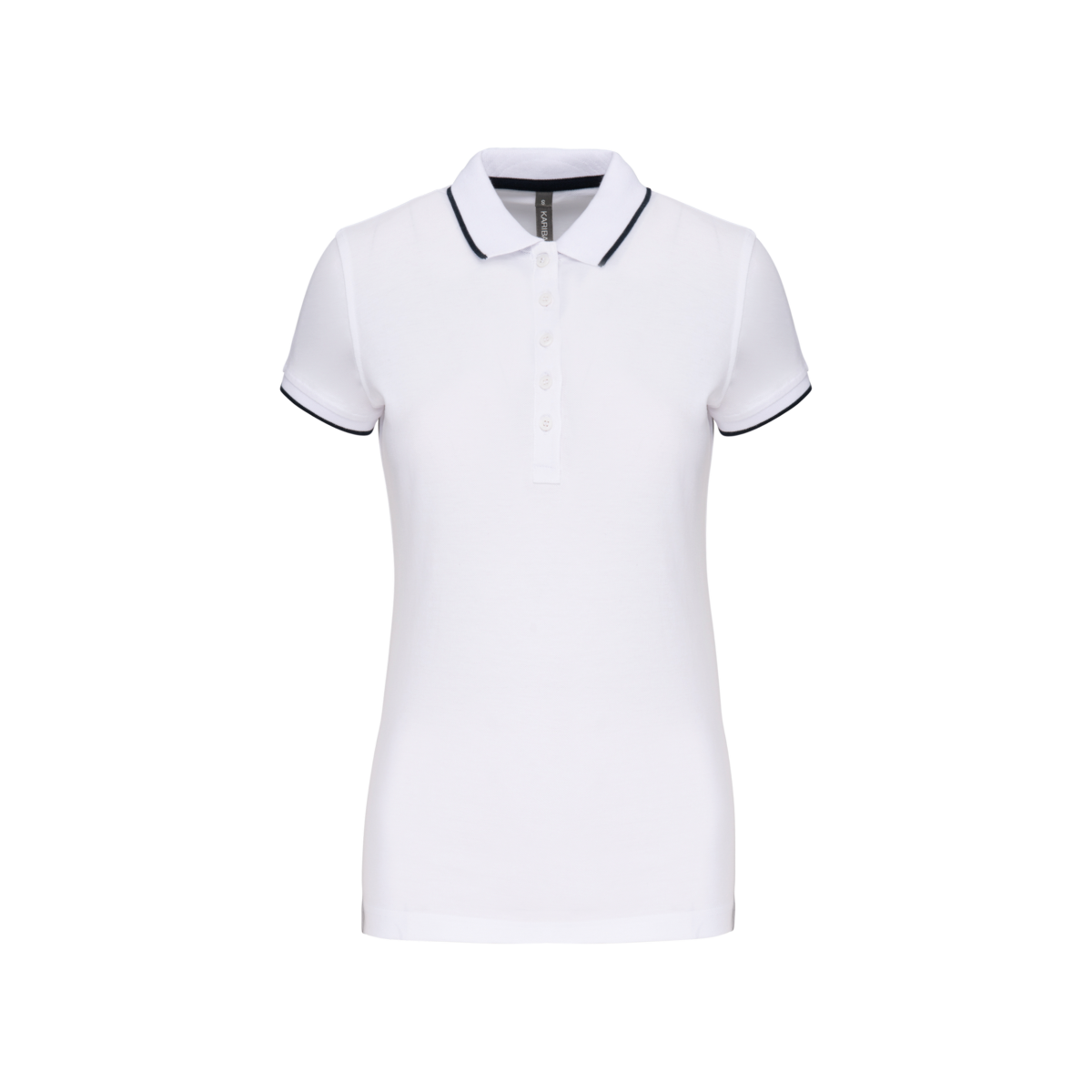 100% coton piqué. Col en bord-côte : liserés dessus et dessous de col contrastés (sauf White : pas de contraste sous le col). Bande de propreté contrastée à l'encolure et aux fentes côtés. Patte de boutonnage col fantaisie 5 boutons. Bord-côte avec liseré