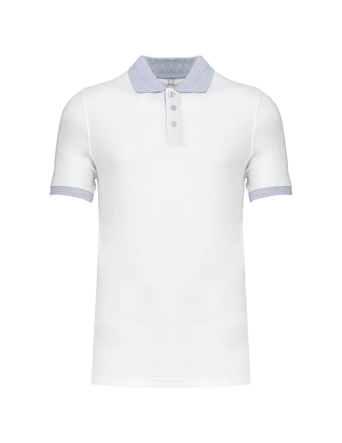100% coton piqué pré-rétréci (Oxford Grey : 90% coton / 10% viscose). Bord-côte contrasté au col et bas de manches. Bande de propreté encolure contrastée. Patte de boutonnage intérieure contrastée avec 3 boutons. Finition double aiguille au bas de vêtemen