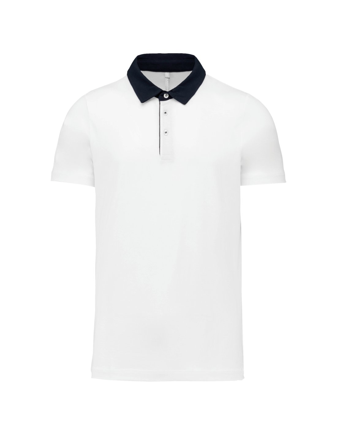 100% coton (65% polyester / 35% coton pour coloris chiné). Maille jersey en coton peigné avec lavage aux enzymes. Col chemise et intérieur patte contrastés avec 3 boutons blanc nacré. Finition double aiguille bas de manches et bas de vêtement.