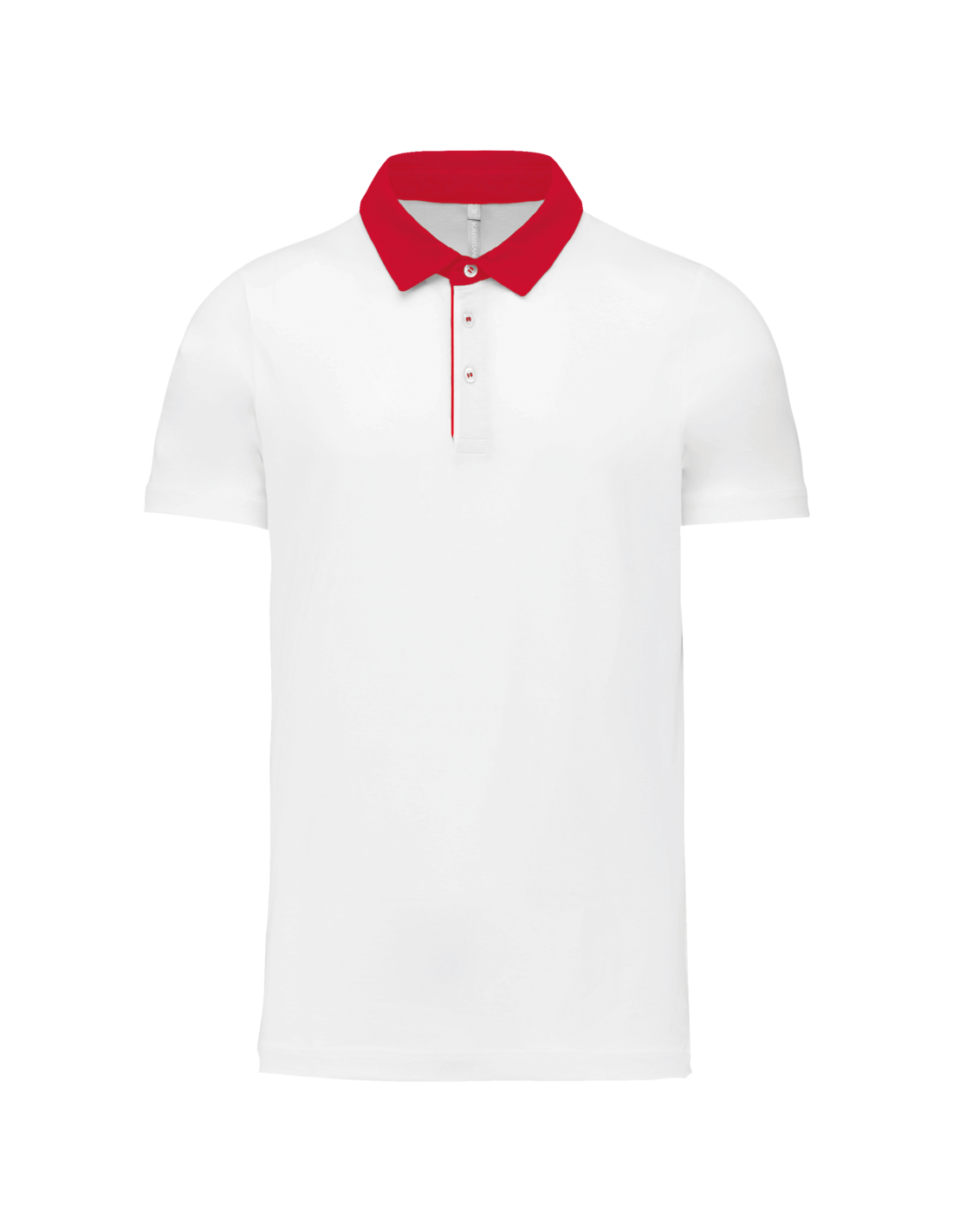 100% coton (65% polyester / 35% coton pour coloris chiné). Maille jersey en coton peigné avec lavage aux enzymes. Col chemise et intérieur patte contrastés avec 3 boutons blanc nacré. Finition double aiguille bas de manches et bas de vêtement.