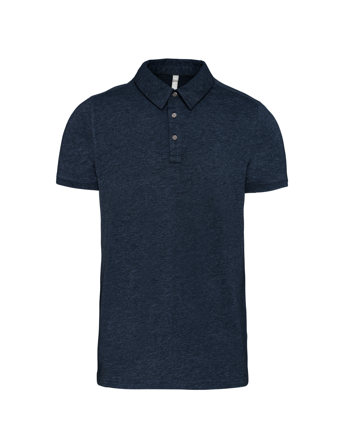 100% coton peigné. (French Navy Heather : 80% coton / 20% polyester - Grey Heather : 65% polyester / 35% coton - Oxford Grey : 90% coton / 10% viscose). Maille jersey. Col chemise. Patte de boutonnage col 3 boutons métal. Empiècement épaule. Finition bord