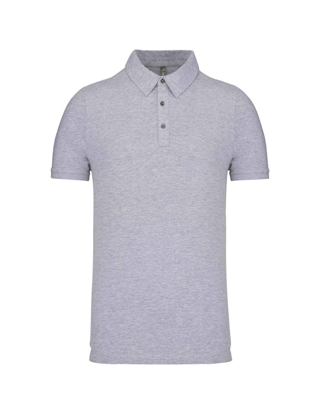 100% coton peigné. (French Navy Heather : 80% coton / 20% polyester - Grey Heather : 65% polyester / 35% coton - Oxford Grey : 90% coton / 10% viscose). Maille jersey. Col chemise. Patte de boutonnage col 3 boutons métal. Empiècement épaule. Finition bord