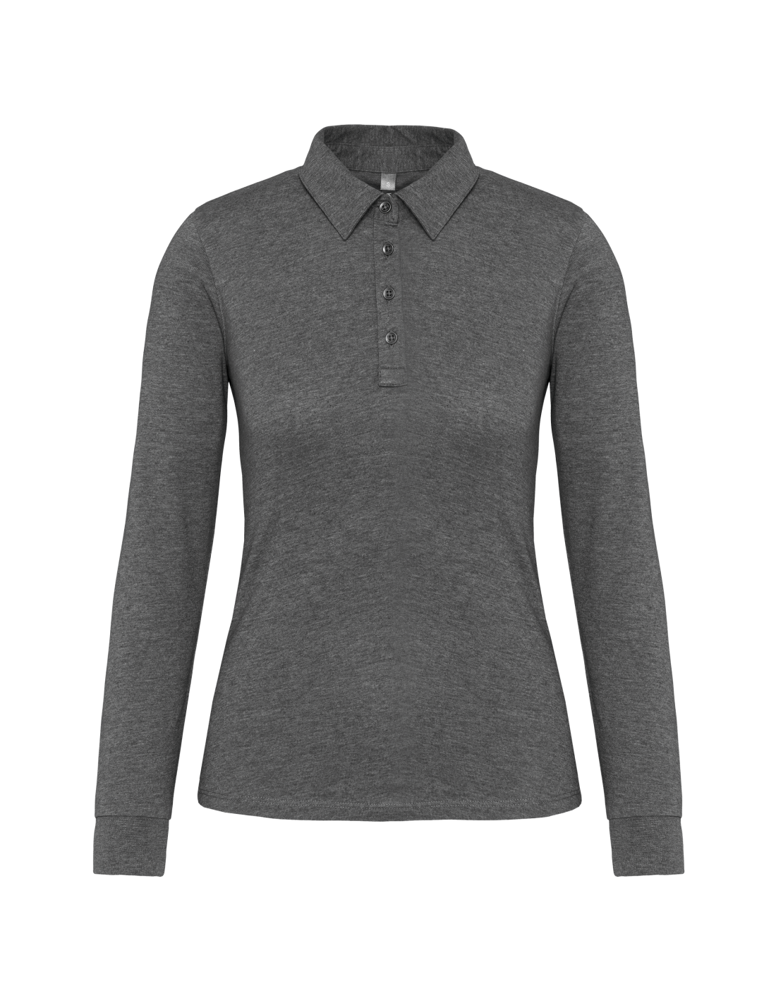 100% coton (Grey Heather : 65% polyester / 35% coton - Oxford Grey : 90% coton / 10% viscose). Maille jersey en coton peigné. Col chemise. Patte de boutonnage col 4 boutons métal. Empiècement épaule. Poignet en bord-côte. Double aiguille bas de vêtement.