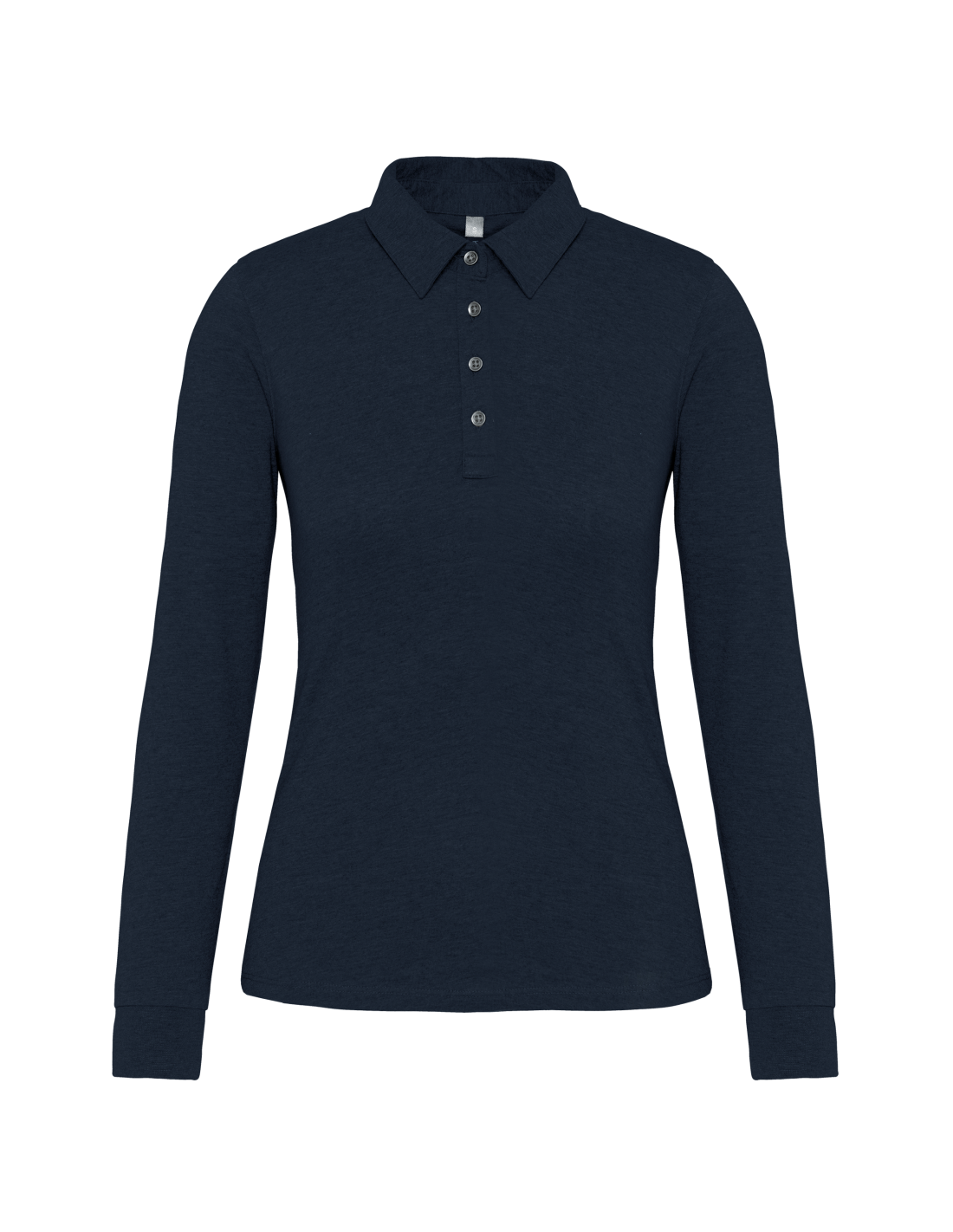 100% coton (Grey Heather : 65% polyester / 35% coton - Oxford Grey : 90% coton / 10% viscose). Maille jersey en coton peigné. Col chemise. Patte de boutonnage col 4 boutons métal. Empiècement épaule. Poignet en bord-côte. Double aiguille bas de vêtement.