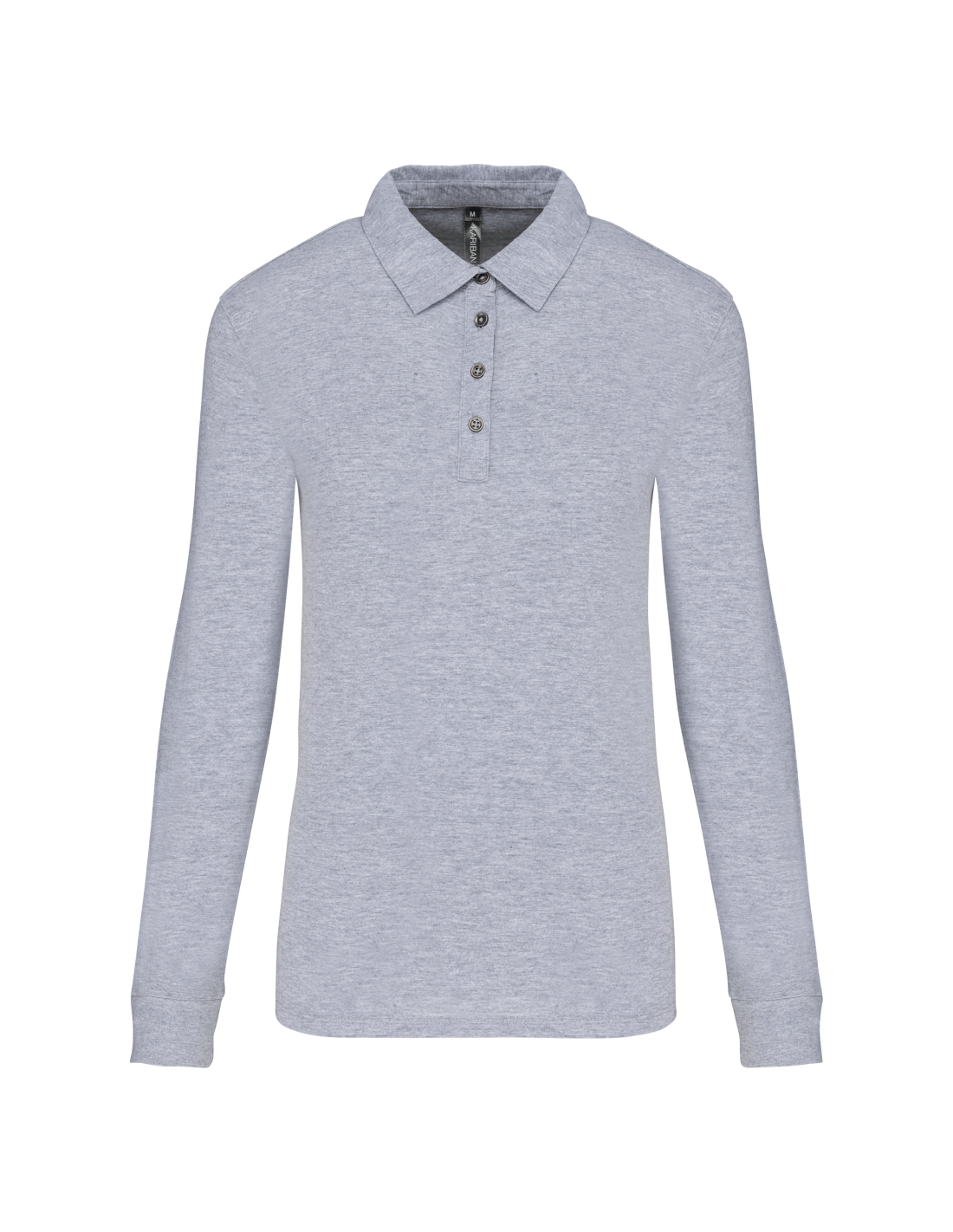 100% coton (Grey Heather : 65% polyester / 35% coton - Oxford Grey : 90% coton / 10% viscose). Maille jersey en coton peigné. Col chemise. Patte de boutonnage col 4 boutons métal. Empiècement épaule. Poignet en bord-côte. Double aiguille bas de vêtement.