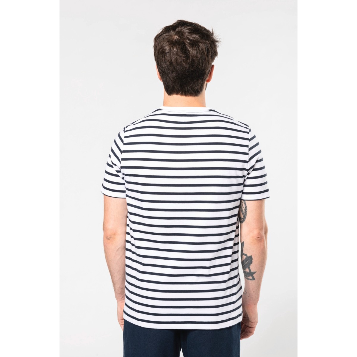 100% coton. Maille jersey en coton peigné. Toucher doux. Encolure ronde en bord-côte. Poche poitrine contrastée côté coeur. Bande de propreté encolure contrastée. Finition double aiguille bas de manches et bas de vêtement.